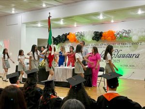 En representación del Presidente Municipal, asistió la LE. Ana Laura Altamirano, acompañado a padres de familia, docentes, directivos y estudiantes en la celebración del cierre de una importante etapa para las niñas y niños de esta institución.