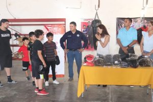Con el firme compromiso de fortalecer las estrategias de prevenci贸n del delito a trav茅s del deporte, se realiz贸 la entrega de material deportivo de boxeo para la Escuela de Box de Seguridad P煤blica Altar.
