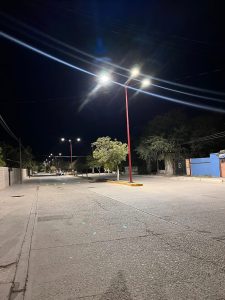 Recientemente se realiz贸 el cambio de 25 l谩mparas LED de 150 watts sobre el bulevar de la calle F茅lix G贸mez Sur, dejando todo este sector completamente iluminado y beneficiando especialmente a las y los estudiantes de la escuela ubicada en esta zona.
