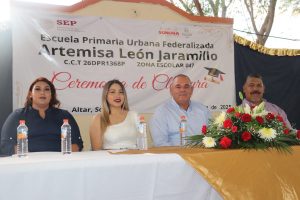 En representación del Presidente Municipal, Lic. Luis Angel Valenzuela Mendivil, asistieron el Director de Obras Públicas, Jorge Espinoza Limon, y la Auxiliar de Contraloría, LAE. Jennifer Lugo Moran, quienes atendieron con gusto la invitación del director del plantel, Mtro. Rosario Humberto Soto Soto.