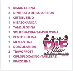 Si tú o alguien que conoces requiere de estos medicamentos, puede pasar a las instalaciones de DIF Altar para recibirlos.