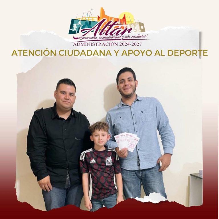 La Administración Municipal 2024-2027, a través del área de Atención Ciudadana y el Instituto Municipal del Deporte, atendió la solicitud para respaldar al pequeño deportista altarense, integrante del equipo Cachorritos de Altar, quien representará con orgullo a nuestro municipio en el Campeonato Estatal Selectivo categorÃa 7-8 años, los dÃas 2, 3 y 4 de mayo en Ciudad Obregón, Sonora.