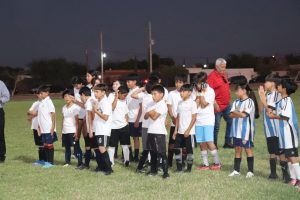 El alcalde Lic. Luis Angel Valenzuela Mendivil, realizó la patada inaugural, destacando que la Administración Municipal 2024-2027 le apuesta firmemente al impulso del deporte infantil y juvenil, promoviendo la sana convivencia, el trabajo en equipo y los valores a través de la práctica deportiva.