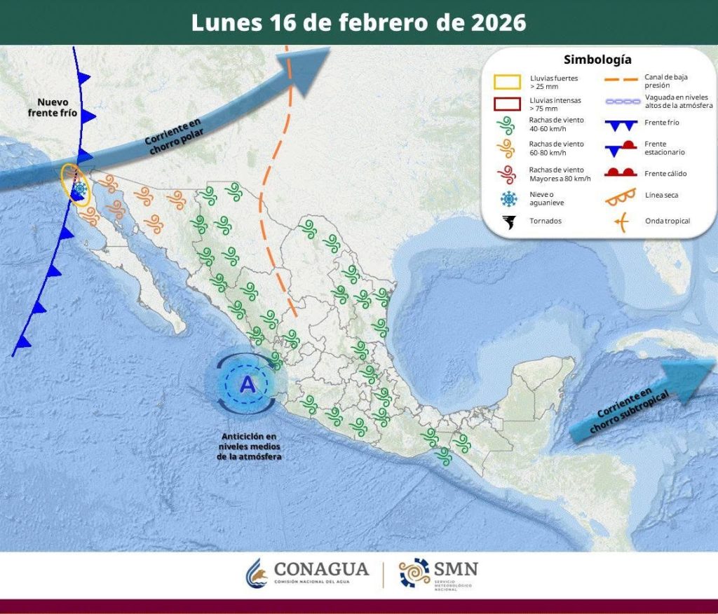 Pronóstico del Tiempo Coordinación Estatal de Protección Civil Hermosillo, Sonora a 16 de febrero de 2026.- Lunes, basándose en la valoración y análisis de la información meteorológica en general y con base en información del Servicio Meteorológico Nacional y diferentes fuentes oficiales de los Estados Unidos, la Coordinación Estatal de Protección Civil emite el siguiente […]