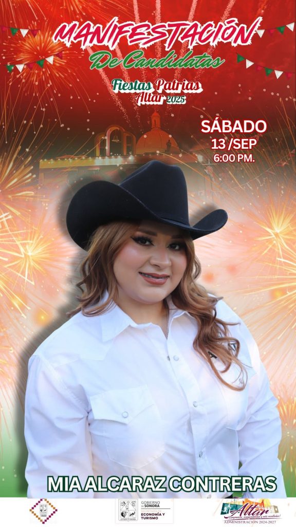 ✨🇲🇽 El H. Ayuntamiento de Altar y el Comité Organizador de las Fiestas Patrias 2025, invitan a toda la comunidad a disfrutar de la Manifestación de Candidatas a Reina de las Fiestas Patrias. 📅 Hoy, sábado 🕕 6:00 p.m. 📍 Recorrido por las principales calles del pueblo. Al concluir, tendremos la gran presentación en la […]