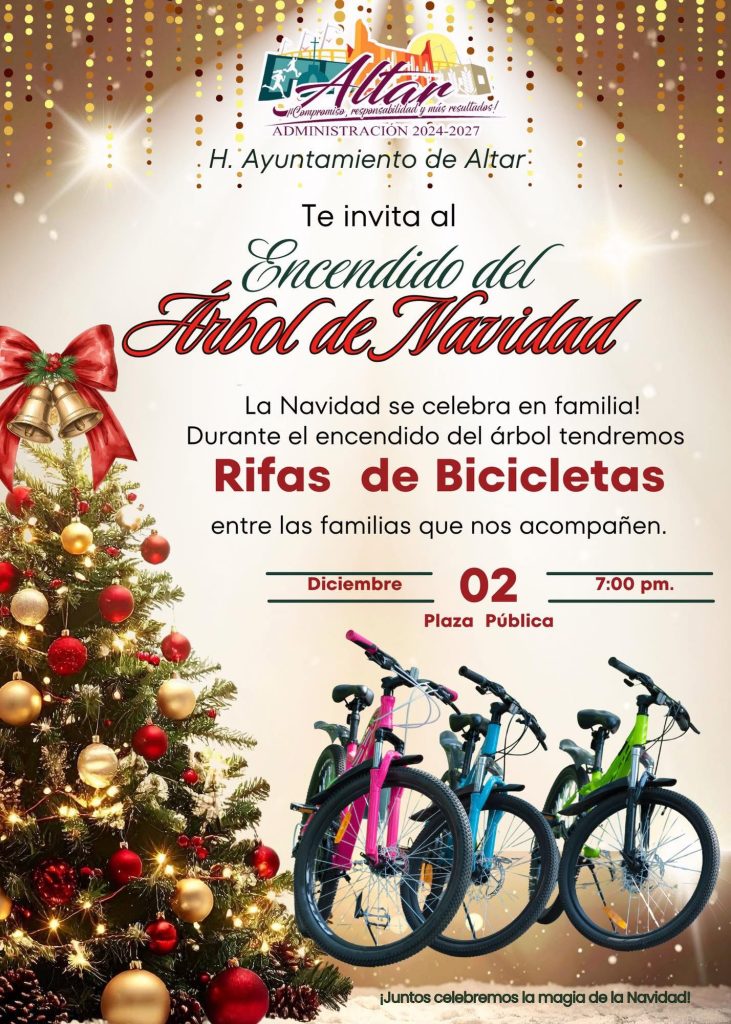 🎄Encendido del Árbol Navideño 2025 El H. Ayuntamiento de Altar informa a la ciudadanía que durante el tradicional Encendido del Árbol Navideño, se llevará a cabo la rifa de bicicletas entre las familias que asistan al evento. Los invitamos a acompañarnos y participar en esta actividad preparada con mucho cariño para nuestra comunidad. 📅 Fecha: […]