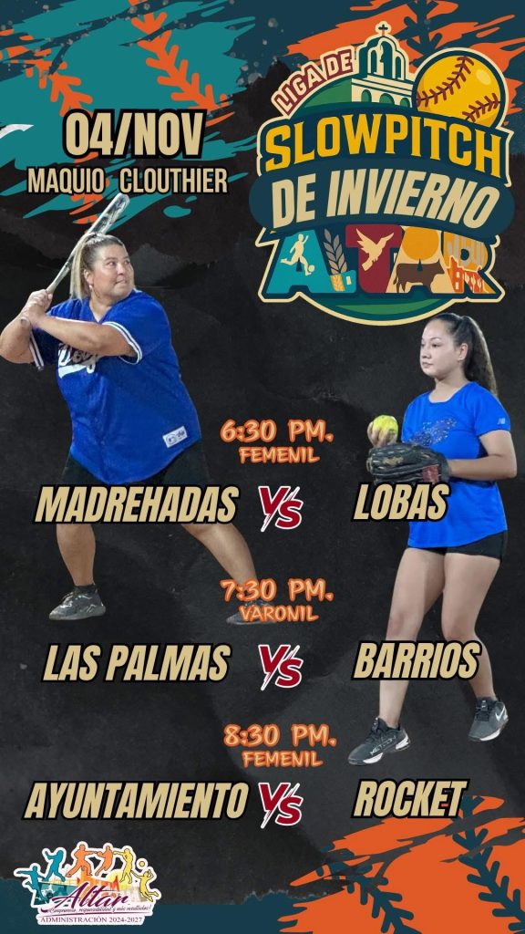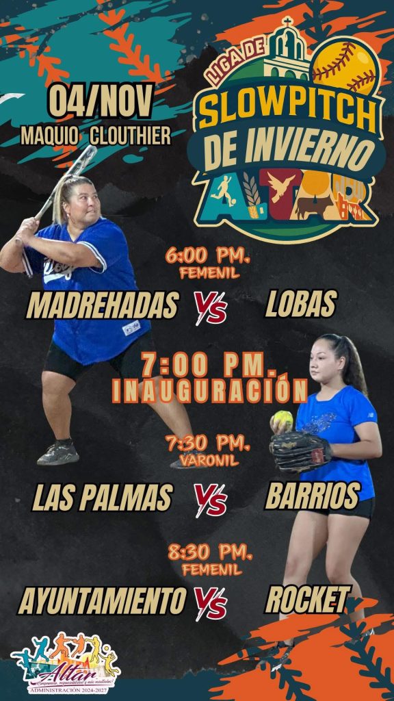 El H ayuntamiento de Altar, a través del Instituto municipal del deporte y la juventud IMD. ALTAR, invita cordialmente a la inauguración de la liga municipal de invierno de Slowpich. Acompáñanos, y se parte de este gran arranque deportivo, que impulsa la convivencia familiar y el fomento al deporte en nuestra comunidad.