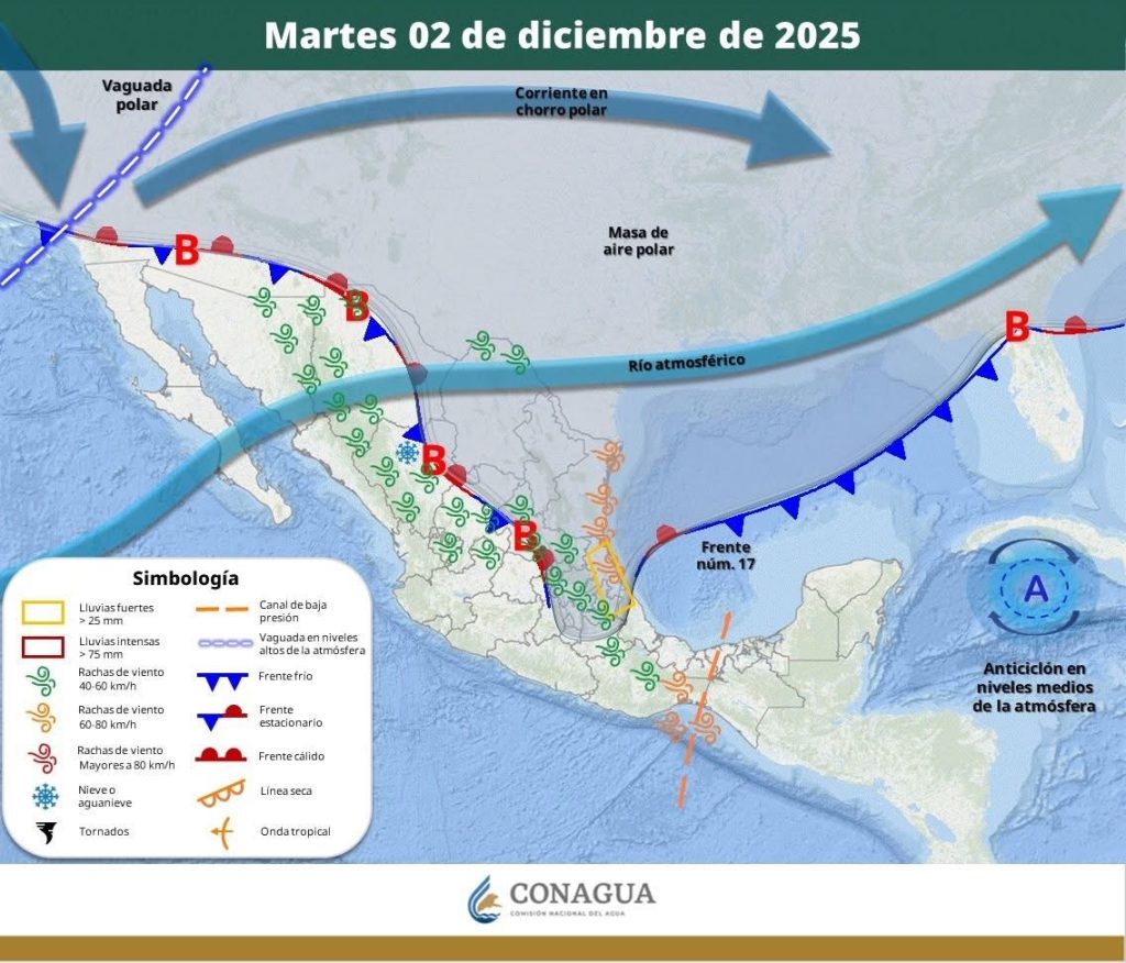 Pronóstico del Tiempo Coordinación Estatal de Protección Civil Hermosillo, Sonora a 02 de diciembre de 2025.- Martes, basándose en la valoración y análisis de la información meteorológica en general y con base en información del Servicio Meteorológico Nacional y diferentes fuentes oficiales de los Estados Unidos, la Coordinación Estatal de Protección Civil emite el siguiente […]