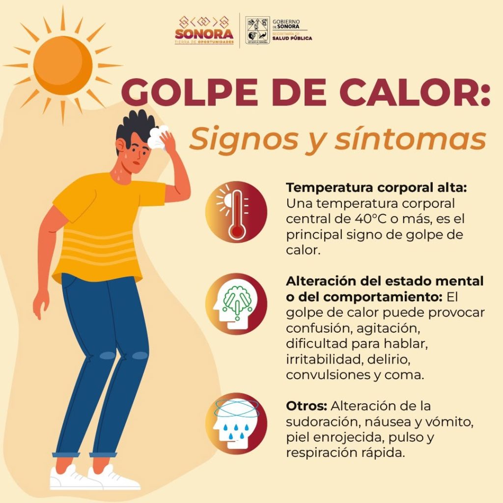 🚨 El golpe de calor puede poner en riesgo tu vida. Conoce sus síntomas y sigue estas recomendaciones para prevenirlo: hidrátate, evita el sol y actúa a tiempo. ☀️💧 #SaludSonora