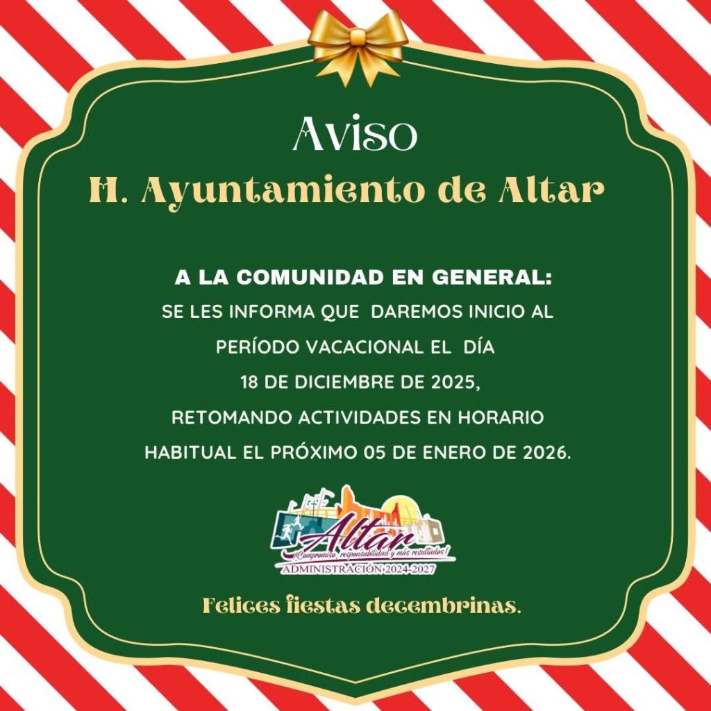 ✨🎄En este periodo vacacional, y por instrucciones precisas del Alcalde, Lic. Luis Angel Valenzuela Mendivil, la Dirección de Seguridad Pública Municipal mantiene y refuerza los recorridos de vigilancia preventiva en comercios, planteles educativos, áreas deportivas y el panteón municipal. Estas acciones forman parte del compromiso de proximidad social, manteniendo una presencia cercana y constante con […]