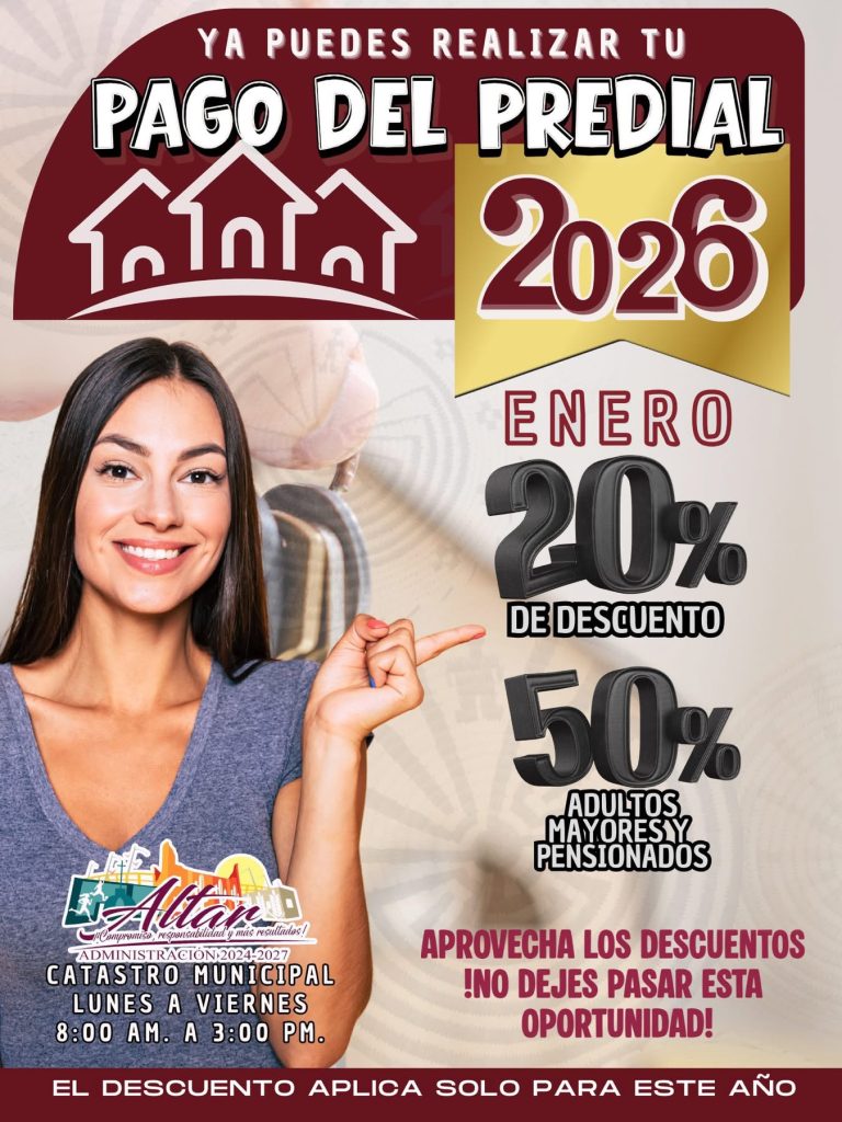 🔶Ya te estamos atendiendo para que realices tu pago del predial. Te esperamos en nuestras oficinas del H. Ayuntamiento de Altar para brindarte una atención rápida y cercana. Cumple a tiempo y sigamos construyendo juntos un mejor municipio.
