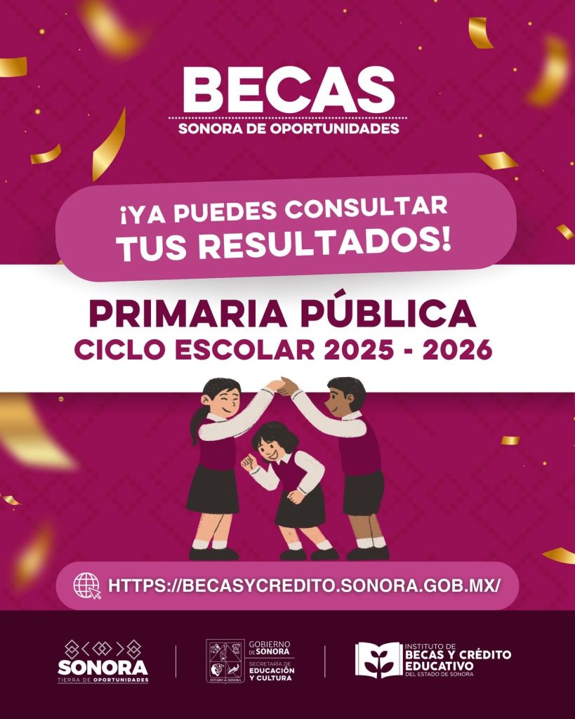 📣 ¡Ya puedes consultar los resultados de la Beca de Primarias Públicas, correspondiente al ciclo escolar 2025–2026! Gracias al apoyo del gobernador Alfonso Durazo, seguimos transformando la vida de las niñas y los niños sonorenses con el programa de becas más grande en la historia de Sonora. 📚 👩💻Consulta aquí: https://becasycredito.sonora.gob.mx/