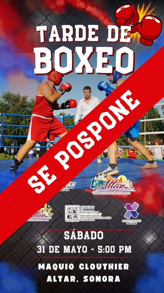 📢 AVISO IMPORTANTE Lamentamos informar que, por causas ajenas, el evento de BOX programado para este sábado ha sido pospuesto. 🙏 Agradecemos su comprensión y les pedimos estar atentos a nuestras redes sociales, donde muy pronto daremos a conocer la nueva fecha. ¡Gracias por su apoyo!