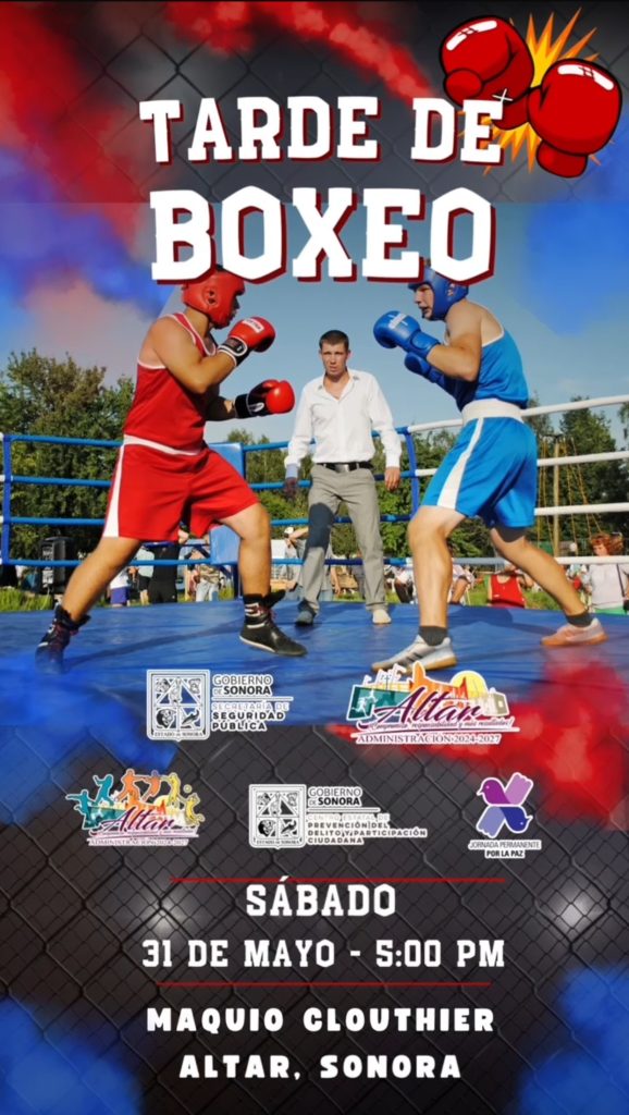 🥊 ¡Te invitamos a una gran tarde boxística Este sábado 31 de mayo, a partir de las 5:00 p.m., acompáñanos en el Maquío Clouthier para disfrutar de emocionantes combates con la participación de escuelas de box de toda la región. 🎉 ¡No te lo pierdas! Invitan: 📍 H. Ayuntamiento de Altar 📍 Secretaría de Seguridad […]