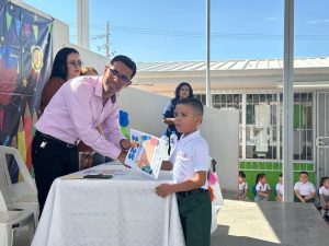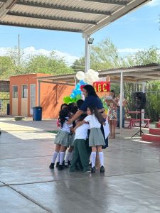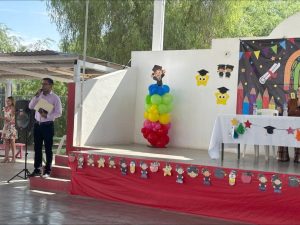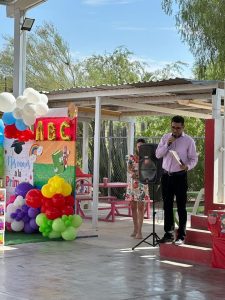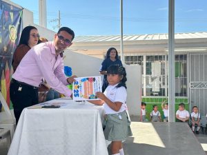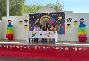 Durante el evento, compartió un mensaje de felicitación por parte del presidente municipal, reconociendo el esfuerzo de las niñas y niños graduados, así como el compromiso de sus maestras, maestros y familias. También los exhortó a seguir acompañando a estos pequeños en cada paso de su formación académica.