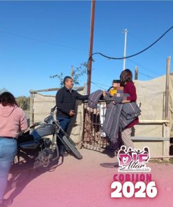 La directora de DIF Altar Sra. Ma Dolores Pesqueira, acompañada del contralor municipal CP. Francisco Traslaviña Calderón y personal de la institución, visitó a las familias de la colonia Bella Vista, donde entregaron cobijas y compartieron momentos de cercanía, llevando no solo calor físico, sino también humano a cada hogar.