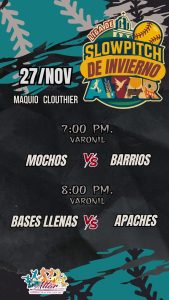 🥎🏀Juegos de Slowpitch y Básquetbol para el día de hoy 27 de noviembre.