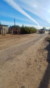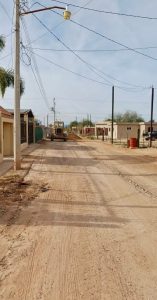 Continuando con los trabajos de mejoramiento urbano en la colonia Benito Juárez, el H. Ayuntamiento de Altar, a través de la Dirección de Servicios Públicos, lleva a cabo labores de raspado y relleno con tierra en la calle Fresnos, con el objetivo de nivelar las vialidades y mejorar las condiciones de tránsito.