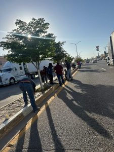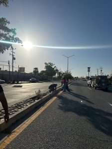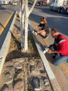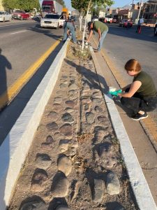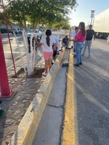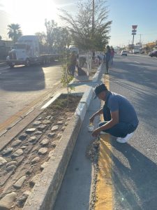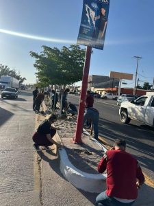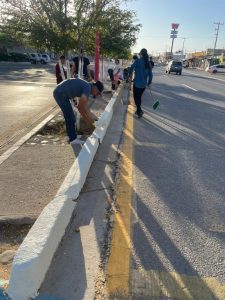 Personal del H. Ayuntamiento continúa con los trabajos de pintura en los camellones del Bulevar Ignacio Pesqueira, justo sobre la carretera internacional.
