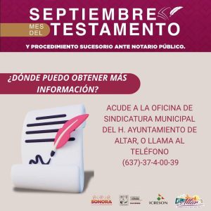 REALIZA TU TRÁMITE DE TESTAMENTO OLÓGRAFO EN LA OFICINA DE SINDICATURA DEL H. AYUNTAMIENTO DE ALTAR ¡TOTALMENTE GRATISi ¡NO LO DEJES PASAR!