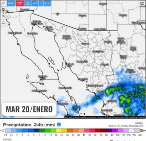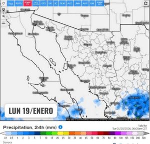 Hermosillo, Sonora a 19 de enero de 2026.- *lunes* basándose en la valoración y análisis de la información meteorológica en general y con base en información del Servicio Meteorológico Nacional y diferentes fuentes oficiales de los Estados Unidos, la Coordinación Estatal de Protección Civil emite el siguiente pronóstico: