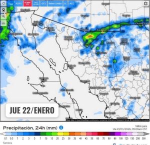 Hermosillo, Sonora a 22 de enero de 2026.- Jueves, basándose en la valoración y análisis de la información meteorológica en general y con base en información del Servicio Meteorológico Nacional y diferentes fuentes oficiales de los Estados Unidos, la Coordinación Estatal de Protección Civil emite el siguiente pronóstico: