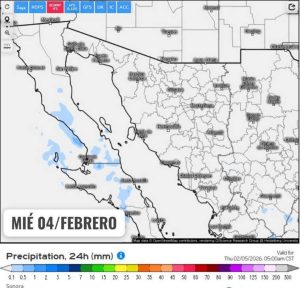 Hermosillo, Sonora a 04 de febrero de 2026.- Miércoles, basándose en la valoración y análisis de la información meteorológica en general y con base en información del Servicio Meteorológico Nacional y diferentes fuentes oficiales de los Estados Unidos, la Coordinación Estatal de Protección Civil emite el siguiente pronóstico: