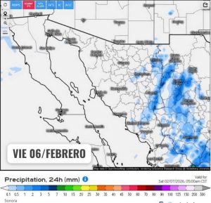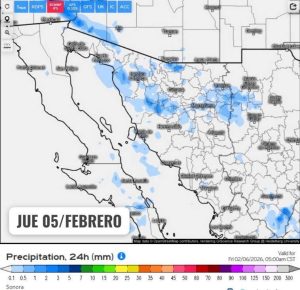Hermosillo, Sonora a 05 de febrero de 2026.- Jueves, basándose en la valoración y análisis de la información meteorológica en general y con base en información del Servicio Meteorológico Nacional y diferentes fuentes oficiales de los Estados Unidos, la Coordinación Estatal de Protección Civil emite el siguiente pronóstico: