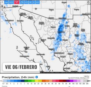 Hermosillo, Sonora a 06 de febrero de 2026.- Viernes, basándose en la valoración y análisis de la información meteorológica en general y con base en información del Servicio Meteorológico Nacional y diferentes fuentes oficiales de los Estados Unidos, la Coordinación Estatal de Protección Civil emite el siguiente pronóstico: