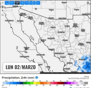 Hermosillo, Sonora a 02 de marzo de 2026.- Lunes, basándose en la valoración y análisis de la información meteorológica en general y con base en información del Servicio Meteorológico Nacional y diferentes fuentes oficiales de los Estados Unidos, la Coordinación Estatal de Protección Civil emite el siguiente pronóstico: