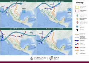 Por su parte, se pronóstica que un nuevo sistema invernal ingrese al estado de Sonora entre los días viernes 06 y sábado 07 de marzo impulsando inestabilidad suficiente para la generación de tormentas aisladas durante el fin de semana en gran parte del territorio. A su vez, estás condiciones se mantendrán los próximos 3 días posteriores al ingreso con efectos como un descenso marcado en las temperaturas, rachas de viento y posible caída de granizo.