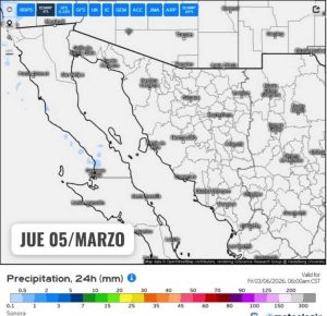 Hermosillo, Sonora a 03 de marzo de 2026.- Martes, basándose en la valoración y análisis de la información meteorológica en general y con base en información del Servicio Meteorológico Nacional y diferentes fuentes oficiales de los Estados Unidos, la Coordinación Estatal de Protección Civil emite el siguiente pronóstico: