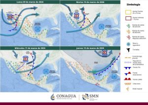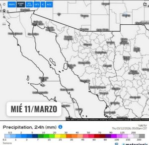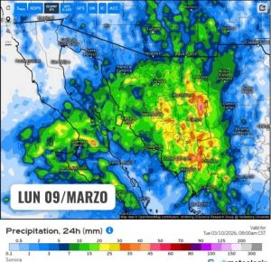 Hermosillo, Sonora a 09 de marzo de 2026.- Lunes, basándose en la valoración y análisis de la información meteorológica en general y con base en información del Servicio Meteorológico Nacional y diferentes fuentes oficiales de los Estados Unidos, la Coordinación Estatal de Protección Civil emite el siguiente pronóstico: