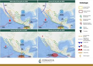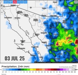 Hermosillo, Sonora a 02 de julio de 2025.- Miércoles, basándose en la valoración y análisis de la información meteorológica en general y con base en información del Servicio Meteorológico Nacional y diferentes fuentes oficiales de los Estados Unidos, la Coordinación Estatal de Protección Civil emite el siguiente pronóstico: