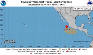 Por su parte, se mantiene en vigilancia una nueva zona de sospecha en el Océano Pacifico con un potencial de desarrollo ciclónico del 50% para los próximos 7 días.