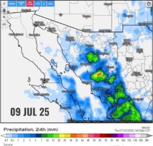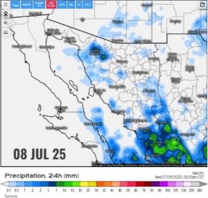Hermosillo, Sonora a 08 de julio de 2025.- *martes* basándose en la valoración y análisis de la información meteorológica en general y con base en información del Servicio Meteorológico Nacional y diferentes fuentes oficiales de los Estados Unidos, la Coordinación Estatal de Protección Civil emite el siguiente pronóstico: