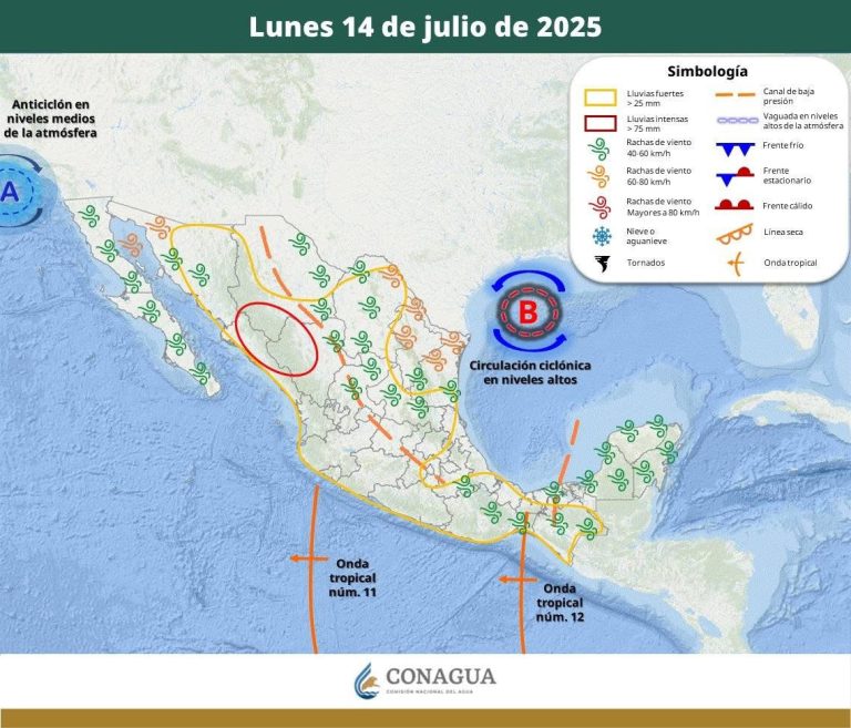 Hermosillo, Sonora a 14 de julio de 2025.- Lunes, basándose en la valoración y análisis de la información meteorológica en general y con base en información del Servicio Meteorológico Nacional y diferentes fuentes oficiales de los Estados Unidos, la Coordinación Estatal de Protección Civil emite el siguiente pronóstico: