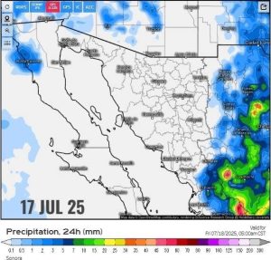 Hermosillo, Sonora a 16 de julio de 2025.- Miércoles, basándose en la valoración y análisis de la información meteorológica en general y con base en información del Servicio Meteorológico Nacional y diferentes fuentes oficiales de los Estados Unidos, la Coordinación Estatal de Protección Civil emite el siguiente pronóstico:
