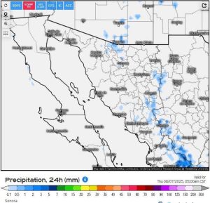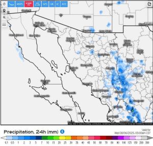 Hermosillo, Sonora a 05 de agosto de 2025.- Martes, basándose en la valoración y análisis de la información meteorológica en general y con base en información del Servicio Meteorológico Nacional y diferentes fuentes oficiales de los Estados Unidos, la Coordinación Estatal de Protección Civil emite el siguiente pronóstico: