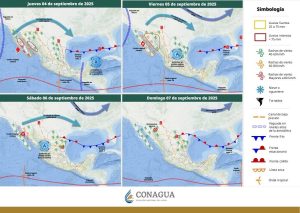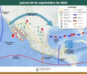 Hermosillo, Sonora a 04 de septiembre de 2025.- Jueves, basándose en la valoración y análisis de la información meteorológica en general y con base en información del Servicio Meteorológico Nacional y diferentes fuentes oficiales de los Estados Unidos, la Coordinación Estatal de Protección Civil emite el siguiente pronóstico: