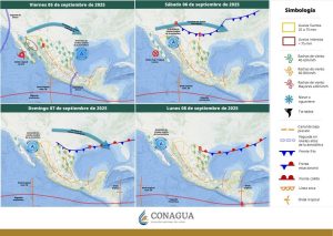 Hermosillo, Sonora a 05 de septiembre de 2025.- Viernes, basándose en la valoración y análisis de la información meteorológica en general y con base en información del Servicio Meteorológico Nacional y diferentes fuentes oficiales de los Estados Unidos, la Coordinación Estatal de Protección Civil emite el siguiente pronóstico: