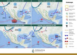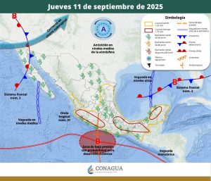Hermosillo, Sonora a 11 de septiembre de 2025.- Jueves, basándose en la valoración y análisis de la información meteorológica en general y con base en información del Servicio Meteorológico Nacional y diferentes fuentes oficiales de los Estados Unidos, la Coordinación Estatal de Protección Civil emite el siguiente pronóstico: