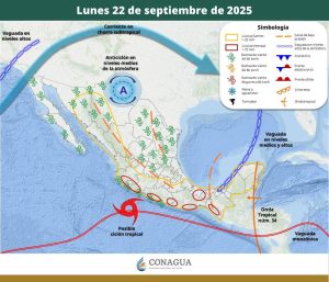 Hermosillo, Sonora a 22 de septiembre de 2025.- Lunes, basándose en la valoración y análisis de la información meteorológica en general y con base en información del Servicio Meteorológico Nacional y diferentes fuentes oficiales de los Estados Unidos, la Coordinación Estatal de Protección Civil emite el siguiente pronóstico: