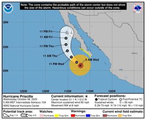 Gobierno de Sonora informa posibles lluvias intensas por “Priscilla”