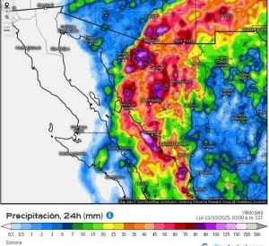 Se esperan precipitaciones que podrían variar entre 75 y 150 milímetros, principalmente en las regiones noroeste, norte, centro, oriente y sur del estado, aunque podrían presentarse tormentas en todo el territorio sonorense.