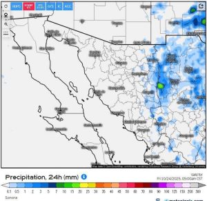 Durante hoy, una *vaguada en niveles altos y medios de la atmósfera* y *la corriente en chorro subtropical* se desplazarán sobre el noroeste del país, generando probabilidad de lluvias ligeras (0.5 a 5mm) para el noreste y norte de Sonora. A su vez, se prevén amaneceres fríos a frescos (7 a 14°C) en la región montañosa y un ambiente cálido a caluroso (36 a 38°C) en todo el estado durante la tarde.