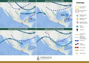 Hermosillo, Sonora a 10 de diciembre de 2025.- Miércoles, basándose en la valoración y análisis de la información meteorológica en general y con base en información del Servicio Meteorológico Nacional y diferentes fuentes oficiales de los Estados Unidos, la Coordinación Estatal de Protección Civil emite el siguiente pronóstico: