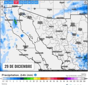Hermosillo, Sonora a 29 de diciembre de 2025.- *lunes* basándose en la valoración y análisis de la información meteorológica en general y con base en información del Servicio Meteorológico Nacional y diferentes fuentes oficiales de los Estados Unidos, la Coordinación Estatal de Protección Civil emite el siguiente pronóstico: