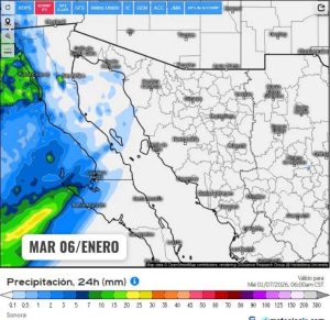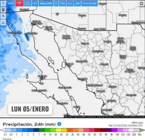 Hermosillo, Sonora a 05 de enero de 2026.- Lunes, basándose en la valoración y análisis de la información meteorológica en general y con base en información del Servicio Meteorológico Nacional y diferentes fuentes oficiales de los Estados Unidos, la Coordinación Estatal de Protección Civil emite el siguiente pronóstico: