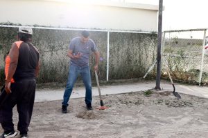 Como parte de estas acciones, también se llevó a cabo la plantación de árboles, con el objetivo de que en un futuro se cuente con áreas de sombra que beneficien a quienes hacen uso de esta cancha.